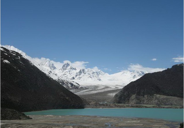 然烏湖北面有著名的拉古冰川,冰川延伸到湖邊。每當冰雪融化時,雪水便注入湖中,使然烏湖經(jīng)常保有豐富的水源。然烏湖邊是綠草茵茵的草場和綠油油的莊稼;湖邊山腰上則是莽莽的森林,再往上是五顏六色的杜鵑花和灌木叢林帶;山頂則是終年不化、重疊起伏的雪山。