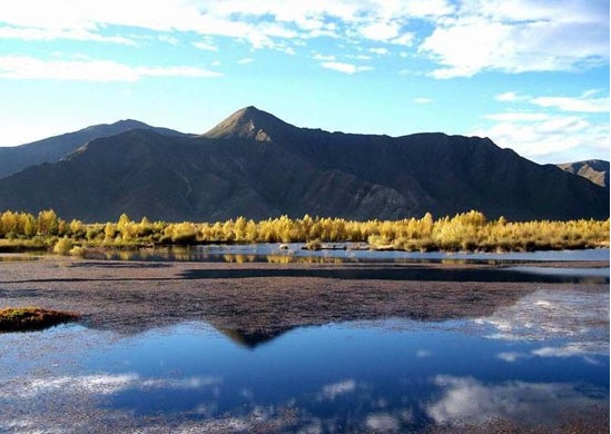 然烏湖周圍高山危聳峻峭,眾多海拔5000米以上的高峰皆有冰川發(fā)育;而山下近湖坡地則長滿了青翠蒼勁的松柏等針葉林叢,在這群山綠影環(huán)抱之中的然烏湖顯得格外靜謐而嫵媚,它那明鏡般的湖面倒映著四圍的雪峰、翠林和那藍天白云,景色異常迷人;再加上湖畔綠茵般的草灘上成群的牛羊以及一塊塊生長著青稞、豌豆、油菜等作物的農(nóng)田點綴其間,構成了一幅既有青藏高原獨特的壯麗風貌、又有藏區(qū)田園牧歌般風韻的風情畫卷。當你沿著湖邊公路巡視暢游時,你就會充分領略到這里的風采,并讓你有種回歸自然的感覺,心曠神怡之極。