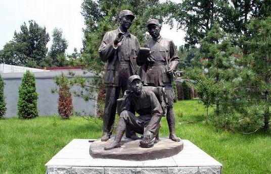 室外雕塑區(qū)位于展覽館的后廣場,設(shè)有六組雕塑:聶榮臻和美穗子,鄧拓、沙飛與新聞戰(zhàn)士,李勇和爆破組,戎冠秀與受傷戰(zhàn)士,國際友人白求恩,狼牙山五壯士,這些雕塑作品從不同側(cè)面反映了晉察冀根據(jù)地的特點(diǎn),加深了觀眾印象。