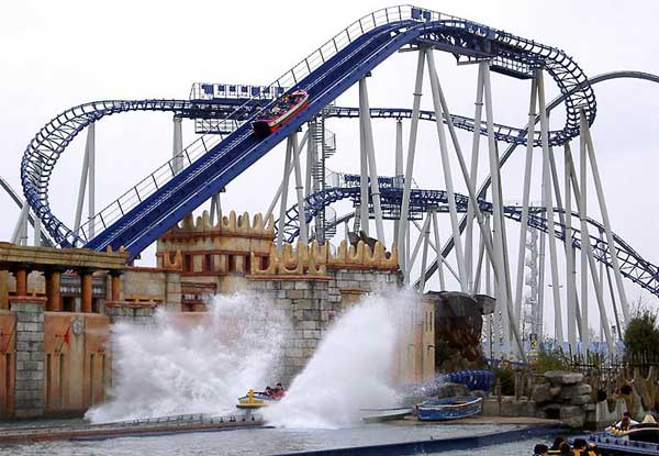 名為“京達卡”(Kingda Ka)的最新過山車是世界上最快的過山車,它的高度達到了139米。開始時水壓彈射器將游客乘坐的車速提高至每小時206公里,穿過270度的環(huán)形通道,讓人有強烈的失重感。這座過山車有一個雙軌道站臺,可同時支持4駕過山車在2條軌道上收放游客,總功率可達到7400馬力,每小時可以接待多達1400名游客。“京達卡”是目前為止,世界上最高,同時也是最快的過山車。