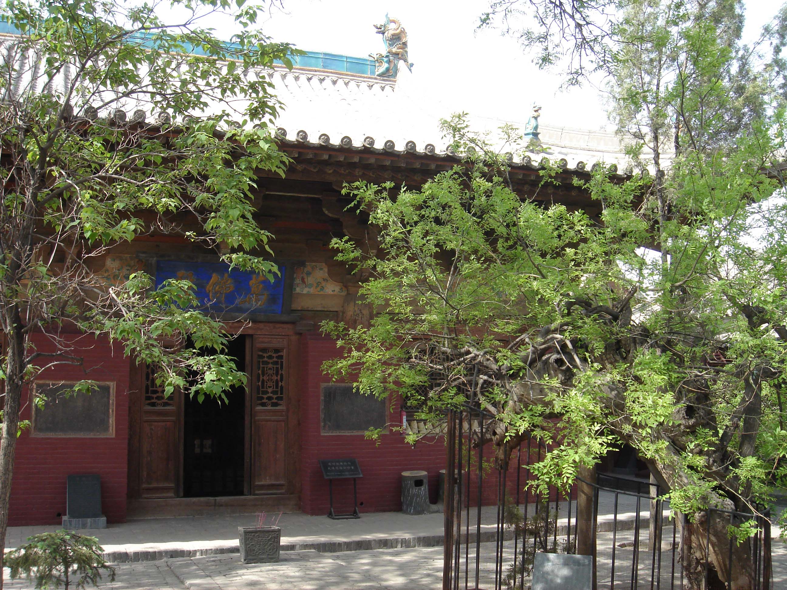 從寺內(nèi)碑文中可知,元、明兩代利用隙地,前創(chuàng)山門天王殿、鐘鼓二樓,后建三佛樓和東西廊房、觀音,地藏二殿。清代雍正、乾隆年間,又重新修葺東西兩廊,嘉慶元年至二十年,又創(chuàng)建舞榭于山門外(已毀),并建經(jīng)堂于佛閣兩翼,添建廂房六間。嘉慶二十年(公元1815年)重修時(shí),對(duì)萬(wàn)佛殿再度修葺。