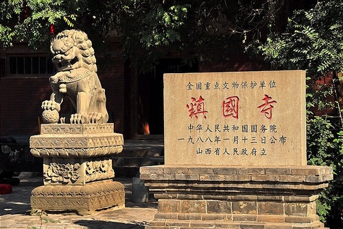 鎮(zhèn)國(guó)寺屬全國(guó)重點(diǎn)文物保護(hù)單位,位于山西省平遙縣城北郝洞村,位于世界文化遺產(chǎn)平遙古城東北方向15公里,大殿始建于北漢天會(huì)七年(公元963年),清嘉慶二十一年(公元1816年)重修,在佛殿內(nèi)梁架上留下許多題記墨跡及寺中現(xiàn)存的碑刻,提供了可靠的歷史佐證。