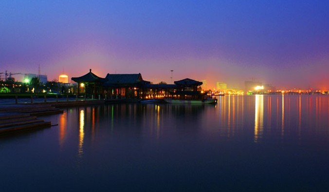 東昌湖始建于宋熙寧三年(公元1070年),在原護(hù)城河的基礎(chǔ)上經(jīng)歷代開(kāi)挖而成,現(xiàn)有水域4.2平方公里,為中國(guó)江北地區(qū)罕見(jiàn)的大型城內(nèi)湖泊。東昌湖引黃河水為源,常年水深3-5米,湖水清澈,無(wú)任何工業(yè)污染;景色宜人,令游客流連忘返。東昌湖中心是已有千年歷史的1平方公里的正方形聊城古城。古城風(fēng)貌保存完好,以古城正中的光岳樓為中心,向四面輻射,形成東西南北四條古城區(qū)干道,其它大街小巷,也都是經(jīng)緯分明,垂直交叉,形成棋盤(pán)方格網(wǎng)狀骨架。