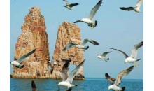 萬(wàn)鳥島又稱車由島,坐落于長(zhǎng)島諸島中部偏東,這個(gè)海拔73.5米、僅有0.05平方公里的小島,在浩渺的汪洋大海之中,簡(jiǎn)直是一粒微不足道的沙粒,然而海深魅力大,島小情趣多,島上棲居著上萬(wàn)只海鷗,被稱為“萬(wàn)鳥島”。萬(wàn)鳥島,又稱車由島,遠(yuǎn)遠(yuǎn)望去,酷似一艘錨泊的登陸艦。全島海岸線長(zhǎng)1.25公里,海岸地貌懸崖陡壁占90%以上,這些如劈如削的斷崖,多石英巖與極巖,破碎性強(qiáng),經(jīng)風(fēng)化和海蝕,崖壁此凸彼凹,石階、石臺(tái)、石窟、石穴鱗次櫛比,形成一座自然的海鷗“石樓”。