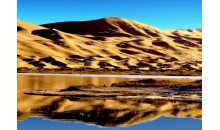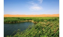 騰格里沙漠月亮湖旅游區(qū) 位于中國內蒙古阿拉善盟境內騰格里沙漠腹地,月亮湖是距離國內各大城市半徑最短的沙漠探險營地,是現(xiàn)代都市人尋求緊張競爭生活之外的驚險刺激與徹底放松身心的最佳游程。月亮湖有三個獨特之處:一是形狀酷似中國地圖:站在高處沙丘一看,一幅完整的中國地圖展現(xiàn)在眼前,蘆葦?shù)姆植几菍⒏魇^(qū)一一標明;二是湖水天然藥浴配方:面積三平方公里的湖水,富含鉀鹽、錳鹽、少量硭硝、天然蘇打、天然堿、氧化鐵及其它微量元素,與國際保健機構推薦藥浴配方極其相似。