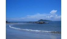 大角灣風景名勝區(qū)位于廣東陽江市海陵島西南端,三面群峰拱護,面向浩瀚南海,沙灘長2.5公里,寬100米,因狀似牛角,故名“大角灣”。這里地處南亞熱帶,全年日照時間長,年平均氣溫22.8℃,水溫23.5℃,降雨量1816毫米,年晴天數(shù)310天,四季氣侯宜人,素以陽光燦爛明媚,沙質(zhì)均勻松軟,海水清澈純凈,空氣清新純潔而著稱,各類質(zhì)素均達國際一類(級)標準,又因沙灘寬闊平坦。