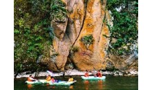 下舞陽(yáng)河景區(qū)系舞陽(yáng)河區(qū)十風(fēng)景名勝大景區(qū)之一,位于鎮(zhèn)遠(yuǎn)縣與施秉縣之間,規(guī)劃面積 121 平方公里,景點(diǎn) 33 處。景區(qū)以高峽平湖、瀑泉飛流為主體,山色水韻風(fēng)光迷人。"破鏡重圓"半含水中半露崢嶸奇妙的三疊水珠落玉盤直瀉深潭;鴛鴦戲水,情深意濃;呼大令喊泉神靈有喊必應(yīng),之水出止呼水隱;山峰神態(tài)似"孔雀開屏",形態(tài)逼真;" 圣師徒"前往探幽 … …