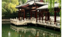 龍?zhí)?,位于?jì)南舊城西門外,洛源橋北,南臨趵突泉,北接大明湖。潭周名泉眾多,形成五龍?zhí)度?,為?jì)南四大泉群之一,內(nèi)有泉池二十七處。公園的建園風(fēng)格兼具有南北造園之精華,是以潭池溪港等景觀構(gòu)成,質(zhì)樸野逸為特點的園林水景園。此水域風(fēng)景秀麗,柳絲醮波,鳴禽啾啾,荇藻漂浮,錦魚嬉戲,素有“夾岸桃花,恍若仙境”之美譽(yù),風(fēng)景幽雅獨具特色