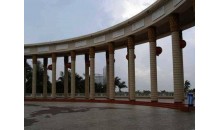湛江海濱公園位于霞山區(qū)東北角海濱,這里有細白的沙灘、湛藍的海水、挺拔的椰樹,如茵的芳草,鮮艷的花卉。富有亞熱帶海洋風(fēng)光,被稱為湛江的“城市客廳”。時代廣場就是公園的大門。大門為歐式建筑風(fēng)格,由二十根圓柱頂起一弧形柱廊,上方鑲嵌著九幅漢白玉浮雕,浮雕描繪了湛江百年歷史,廣場地面用紅、褐、灰三色馬賽克拚成一幅世界地圖。