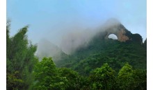 月亮山位于位于廣西壯族自治區(qū)桂林市陽朔縣十里畫廊景區(qū)末端。這里的風光古樸素雅、恬靜安逸。山頭上有一個天然的大石拱,兩面貫通,遠看酷似天上明月高掛。從不同的角度變換觀看,此洞形狀也不斷變化。