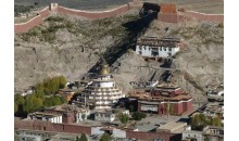 嘎東寺位于日喀則白朗縣年楚河以北16公里嘎東鎮(zhèn)境內(nèi)。嘎東寺歷經(jīng)寧瑪派、噶舉派、薩迦派,到十七世紀(jì)中葉開始盛行格魯派。寺中珍藏有舉世罕見的寶物,即該寺第四任堪布桑布?xì)J布的兩條徑骨和空行母絲薩曲珍的頭顱。在桑布?xì)J布右徑骨上端的骨縫四周天然生成著微小的釋迦牟尼、觀音菩薩、無量光佛、護(hù)法神、度母五尊佛像;左脛上端天然生成著微小的釋迦牟尼佛像和4個白色舍利;在度母化身空行母絲薩曲珍的頭顱上天然生成著三個藏文字母和度母像。原嘎東寺已被毀壞,1985年在原址上重新修建了嘎東寺。