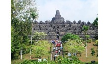 婆羅浮屠位于印度尼西亞,大約于公元750年至850年間,由當(dāng)時統(tǒng)治爪哇島的夏連特拉王朝統(tǒng)治者興建?!捌帕_浮屠”這個名字的意思很可能來自梵語"Vihara Buddha Ur",意思就是“山頂?shù)姆鹚隆?。后來因為火山爆發(fā),使這佛塔群下沉、并隱蓋于茂密的熱帶叢林中近千年,直到19世紀(jì)初才被清理出來。與中國的長城、印度的泰姬陵、柬埔寨的吳哥窟并稱為古代東方四大奇跡。