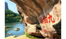 九曲溪是武夷山脈主峰——黃崗山西南麓的溪流,位于福建省武夷山峰巖幽谷之中。因武夷山有三十六峰,九十九巖。峰巖交錯,溪流縱橫,九曲溪貫穿其中,蜿蜒十五華里。又因它有三彎九曲之勝,故名為九曲溪。它全長約9.5公里,面積8.5平方公里。山挾水轉,水繞山行,每一曲都有不同景致的山水畫意。“溪流九曲瀉云液,山光倒浸清漣漪?!毙蜗蟮毓串嫵隽司徘男沱愝喞?。
