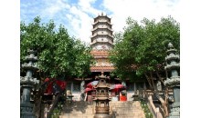 據(jù)清光緒《嘉應(yīng)州志》載,由南漢王劉鋹始建于大寶八年(公元965年),距今已有一千多年歷史。鐵塔分為七層,身高4.2米,呈四方形,塔底邊長1.6米,為生鐵鑄成,每面鑄有大小佛像250個(gè),四面合計(jì)為一千佛,故名千佛塔。原塔建于修慧寺,因寺毀,清乾隆初年嘉應(yīng)州官王者輔將鐵塔移于梅城東巖山頂,上面蓋亭宇,周圍筑欄桿,并砌石階,以供游覽者登臨觀賞。