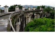 拉塔石炮臺位于拱北炮臺山。清政府在第一次鴉片戰(zhàn)爭中失去了對澳門的軍事控制權(quán)以后,于1841年修筑拉塔石炮臺,派把總率兵駐守兼管關(guān)閘汛務(wù)。1849年8月22日,關(guān)閘龍?zhí)锎灏l(fā)生了沈亞米等青年刺殺澳門總督亞馬勒事件。25日,澳葡當(dāng)局在英、法、美等國的支持下,悍然進(jìn)攻關(guān)閘地區(qū),并攻占了拉塔石炮臺。1890年,廣州府前山海防軍民同知府蔡國楨面對葡萄牙人向前山、灣仔、橫琴等地?cái)U(kuò)張及軍事挑釁,不畏強(qiáng)暴,毅然領(lǐng)兵收復(fù)拉塔石炮臺,隨即加強(qiáng)陸地、水域的布兵設(shè)防。