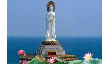 1993年中國國務院宗教局和海南人民政府批準興建南山寺,并在寺前的海中塑108米高之觀音圣像。此像由海南三亞南海海上觀音功德基金會發(fā)心敬建,三尊化一體,巍峨壯觀,實乃世界造像之最。敬造工程因其規(guī)模宏偉、意義殊勝、佛理底蘊豐富,被譽為“世界級、世紀級”的佛事工程。中國佛教協(xié)會趙樸初會長欣然為圣像題名——“南海海上觀音”。