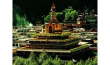 拉卜楞寺西南角,由三世貢唐倉?貢曲乎丹貝仲美大師建成于1805年,原名現(xiàn)見解脫大金塔,因塔內(nèi)供有從尼泊爾迎請來的無量光佛(阿彌陀佛)像而享譽海內(nèi)外,寶塔造型別致,工藝精巧,在建筑藝術(shù)與宗教意義上達到了完美神圣之境界。現(xiàn)存寶塔由六世貢唐倉?丹貝旺旭大師為丕振宗風(fēng),宏教利民,而于1991年2月8日在原寶塔遺址舉行凈地儀軌,主持籌建。