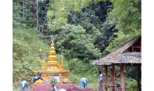 位于勐??h城東南佛雙公路7公里處的曼壘村后山頂上。母塔高9米,子塔高6米,造型美觀,周圍古木參天,環(huán)境優(yōu)美。傳說佛祖釋迦牟尼曾帶領一名高徒到西雙版納傳經時曾坐在此地休息,后來當?shù)卮鲎迦嗣駷榱思o念他,運來磚石建塔。據(jù)說此塔已有1000多年歷史。