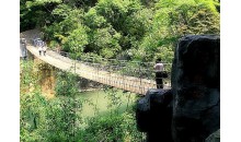 仙人橋位于縣城西南40余公里處的洛陽鎮(zhèn)半星雷屋村,高山斜坡上、綠樹掩映間,有大、小拱天然仙人橋兩座,屬石灰?guī)r溶蝕地貌景觀。大拱橋高70米,寬50米,長150米,小拱橋更為壯觀,高約138米,內拱高106米,寬53米,長約156米,在大拱仙人橋的入口處,有峰巒延綿,勢如雄獅回首南望,獅身高約38米,長約60米,獅頭、獅眼因石灰?guī)r溶蝕脫落而成,形成了“雄獅回頭”的獨特景觀。