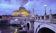 圣天使堡(Castel Sant’Angelo),位于意大利羅馬臺伯河畔,古羅馬地區(qū)的最西端,又稱哈德良陵墓(Mausoleo di Adriano).有數條橋可通往臺伯河西岸,較重要的一是伊曼紐爾二世橋(Ponte Vitttorio Emanuele Ⅱ),另一就是前往圣天使堡的著名橋梁(Ponte Santa Angelo)。