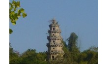 鎮(zhèn)風(fēng)塔在饒平縣拓林鎮(zhèn)東北l千米的風(fēng)吹嶺西麓。困拓林地處海濱,屢遭風(fēng)潮之害,昔人于嶺高面海,常年風(fēng)聲颯颯的風(fēng)口處建塔,取鎮(zhèn)風(fēng)鎮(zhèn)水之意,故名。元至正十三年(1353年)二月建,塔高22米,基圍16米,七層八面,塔身各層用石板鋪蓋,游人可在塔內(nèi)沿螺旋形石階登上各層,塔廊還裝有石欄桿,每層開設(shè)圓窗和拱門,可供游人步出塔廊覽觀山勝。