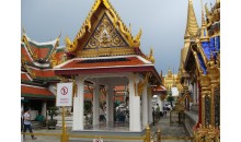 國(guó)家皇宮坐落在吉隆坡的一座小山丘上,雖沒(méi)有其他大國(guó)的皇宮建筑的宏大氣派,但卻有著皇宮一如既往的輝煌與莊嚴(yán)。在平常的時(shí)期,皇宮并不對(duì)外開(kāi)放,所有的游客只能在皇宮門口欣賞整個(gè)皇宮的華麗。簡(jiǎn)單的皇宮門口是由一扇并不是很寬敞的鐵門與旁邊的小崗?fù)づc小門洞組成。僅僅就這一小片風(fēng)景,就讓游客迷戀不已。鐵門是用黑色作底色,襯以金黃色作為裝飾,典雅大方,從嚴(yán)肅中透出一種高貴。在鐵門的側(cè)邊的崗樓和崗樓旁的門洞中,各有一名哨兵站崗,在崗樓中的哨兵身穿白色上衣配有綠色前裙的制服,手持長(zhǎng)槍;在門洞中的哨兵,則穿一件紅色上衣,黑色長(zhǎng)褲,胯下騎一匹黑色高馬,威風(fēng)凜凜,常常吸引無(wú)數(shù)鏡頭。