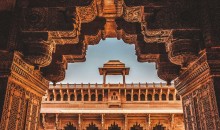 煙云燎繞的火焰山下,郁郁蔥蔥的木頭溝畔,一座規(guī)模宏大的人文 景觀,以其獨特的藝術風格,屹立在312國道西側,它就是1991年5月對 外開放接待游人的新疆大漠土藝館, 地理坐標89°32′7″E,42°56′ 8″N,海拔140米,由312國道的勝金口往北拐上前往柏孜克里克干佛洞的旅游專線公 路四公里處,便可看到大型停車場后的高坡上矗立著一座高大的民族風格建筑群,正中是十四米高的磚砌圖案大門.