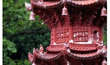 陶塔位于涌泉寺門前兩側(cè)。該對陶瓷千佛塔,高6.83米,于1972年從福州南郊龍瑞寺移來,用作鎮(zhèn)寺之寶。它是宋元豐五年(1082年)用陶土分層燒造,然后拼合累疊而成的。此類以陶燒造的寶塔,在國內(nèi)十分罕見。該對陶塔,東邊的稱“莊嚴(yán)劫千佛寶塔”,西邊的稱“賢劫千佛寶塔”。兩塔形式相同,均為八角九層,每座塔壁均貼有雕塑佛像1078尊,八角塔檐上有四方佛72尊,懸掛陶制塔鈴72枚。石砌塔座刻有金剛力士、蓮瓣、舞獅等,刻銘文記述建造時間和捐獻(xiàn)者以及造塔工匠的姓名。