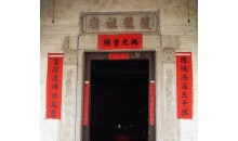 護龍祖廟在端州區(qū)黃崗鎮(zhèn)前村,始建于清初,同治十年(1871)重修。四周古樹懷抱,環(huán)境清幽,有小溪潺潺流過,廟前遠眺,田園秀色一覽無遺。廟為三進院落四合院式布局,面積136平方米,大門上方鑲嵌楷書“護龍祖廟”石匾,前后殿為硬山頂,面寬進深均三間,建筑物前設“低頭牽”,抬梁與穿十混合式梁架結構,兩殿之間以平面方形的卷棚頂廟亭相連,亭兩側空地邊緣,還用矮墻連貫前殿與后殿,使之渾然一體。