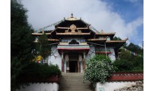 喇嘛嶺寺位于西藏林芝地區(qū)所在地八一鎮(zhèn)東南三十公里處的森林包圍的山坳里。喇嘛嶺寺的金頂與翠綠的松柏交相輝映。寺院經(jīng)堂和僧舍四周,各種顏色的菊花、格?;幭喽菲G,鐃跋聲、鈴鼓聲以及渾厚而又清脆的誦經(jīng)聲回蕩在山谷。這座建于上個世紀(jì)三十年代末的古剎,屬藏傳佛教四大教派之一的寧瑪派(俗稱紅教)寺廟。