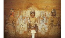 五佛沿寺石窟位于景泰縣東面的五佛鄉(xiāng),距景泰縣城20公里。五佛沿寺即沿寺石窟。石窟中有五尊大佛,又名五佛寺??邇?nèi)兩旁有小佛千尊,俗稱千佛寺。石窟進(jìn)深9米,寬7米,中間有5米寬方形柱直抵窟頂,塔柱四面開(kāi)龕,龕內(nèi)各塑像一尊。前面釋迦佛為清康熙年間重修,其余三尊形態(tài)各異神態(tài)自若,腰細(xì)面圓,方頤突出,屬宋代晚期作品,窟后南北二角各塑一尊泥佛坐于束腰蓮座之上,較前者造型高大,金面豐腴,體態(tài)端莊,均內(nèi)著“僧祗支”下著裙,外著袈裟,其造像特點(diǎn)大抵為晚唐和五代遺存。