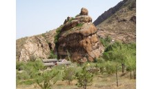 后召?gòu)R遼石窟寺位于巴林左旗林東鎮(zhèn)西南約25公里的峽谷中。石窟開鑿在谷內(nèi)南向的陡壁上,窟前有大殿,面闊7間,進(jìn)深3間??叻种小⒛?、北三窟,均較完整。中窟正中為釋迦佛涅盤像,俗稱臥佛,佛像兩側(cè)有菩薩及弟子像,作痛哭流涕狀,形象逼真,惜已殘損。南窟刻有釋迦佛、文殊菩薩、普賢菩薩及力士像。北窟分南北兩小室,北小室雕像同于南窟,南小室的佛像兩下側(cè)方,刻有契丹裝束的供養(yǎng)人浮雕像,其旁浮雕力士像一對(duì),面目猙獰,腳著長(zhǎng)靴,頗有地方特色。