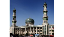 庫(kù)爾勒清真大寺位于庫(kù)爾勒市中心"老城"地方,1987年重建,規(guī)模宏偉,整潔寬敞,裝飾華麗,建筑風(fēng)格頗新穎。殿堂、院內(nèi)可同時(shí)容納7千僑匯人作禮拜。迎街門(mén)樓高25米,分7層,每層有房間若干,為阿訇、毛拉司事休憩之處。殿堂內(nèi)設(shè)冷風(fēng)機(jī),頂棚高懸吊燈、吊扇。