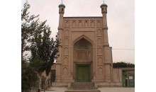 汗騰格里寺位于市南門。因寺院地處南門,故得名南門大寺。1902年進行過重建,1987年前,在原來南關(guān)清真寺的基礎(chǔ)上又加以擴建,改用今名“汗騰格里”(王中之王的意思),是市內(nèi)較大的維吾爾族清真寺之一。重建后的大寺,位于南門臨街,坐西向東,外觀壯麗,造型美觀,四座高大尖塔,簇?fù)碇虚g的大圓屋頂,兩側(cè)另有兩個小圓頂陪襯,具有濃郁而典雅的伊斯蘭建筑風(fēng)格。
