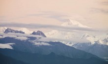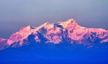 干城章嘉峰(Kangchenjunga,也常寫為Kanchenjunga),又叫“金城章嘉峰”、“康章忠格峰”,峰名Kanchenjunga原出藏語的四個字,通常翻譯為Kang-chen-dzo-nga或Yang-chhen-dzo-nga,在藏語和錫金語中的意思是“雪中五寶”,這從它有五個峰頂而得來的,并且其中四個峰頂?shù)暮0卧?400米以上。