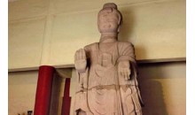丈八佛石造像亦稱(chēng)興國(guó)寺石造像,坐落在山東省博興縣城東南10公里處的寨郝鄉(xiāng)寨高村西北角,因其身高丈八,俗名丈八佛。佛像坐北面南,全高6.75米,底座高1.5米,底面積7.29平方米,為單身立式圓雕青石造像。佛像高肉髻,面方圓,微笑,豐頤大耳,法相莊嚴(yán),身披“褒衣博帶式”通肩袈裟,內(nèi)著僧支祗,胸前打結(jié),“施無(wú)畏與愿印”,赤足立于蓮花座上。