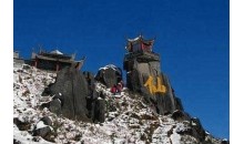八寶云光洞位于龍井頂前懷的一塊平地上,此處風(fēng)景十分幽靜,西依—條小溪,北靠參差交錯(cuò)的巖石和松柏,東臨深澗,南有浩渺的大海,春夏季節(jié),從山的南麓遠(yuǎn)望,可見漫山云霧翻滾,猶如狂濤襲來。云光洞處曾建有幾座廟宇,名為延壽宮,為金代所建,它前臨深谷,后背云光渦,景色十分秀麗,古人曾形容這里“懸榻低云樹,開窗近半星”,置身其間,使人有進(jìn)入洞天福地之感,可惜,樸素典雅的延壽宮毀于戰(zhàn)火,只留下斷壁殘?jiān)?/p>