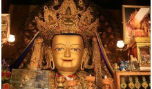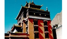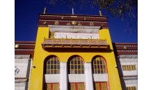 班禪新宮位于扎布倫寺以南,是十世班禪在1954年建造的夏宮,新宮建筑富麗堂皇,十分幽雅,是避暑的好地方。宮內(nèi)放置了很多西藏歷史文物及藝術(shù)精品,尤以一幅《八思巴會(huì)見(jiàn)忽必烈》的壁畫(huà),最為精美。新宮有三道門(mén),第一道門(mén)前檐有四根八角朱漆大柱抵頂,門(mén)殿浮雕著兇悍不馴的野獸、騰躍欲飛的蟠龍和各種花卉圖案門(mén)壁兩側(cè)。彩繪著卷云、猛虎、長(zhǎng)龍、人物和佛教故事壁畫(huà)。筆法細(xì)膩,形神俱肖。