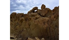 蚌殼化石山 坐落在距阿克蘇市120公里的烏什縣城西。山上遍布是蚌殼化石,有的落在地面,俯首可得,有的鑲嵌在巖石上;化石形似燕子的 頭、翅膀,故又稱燕子?;娇梢宰C明在遠古時代,這里曾是一片汪洋大海。登上化石山,遠眺白雪皚皚的天山,近看一望無際的農(nóng)田,令人 心曠神怡。